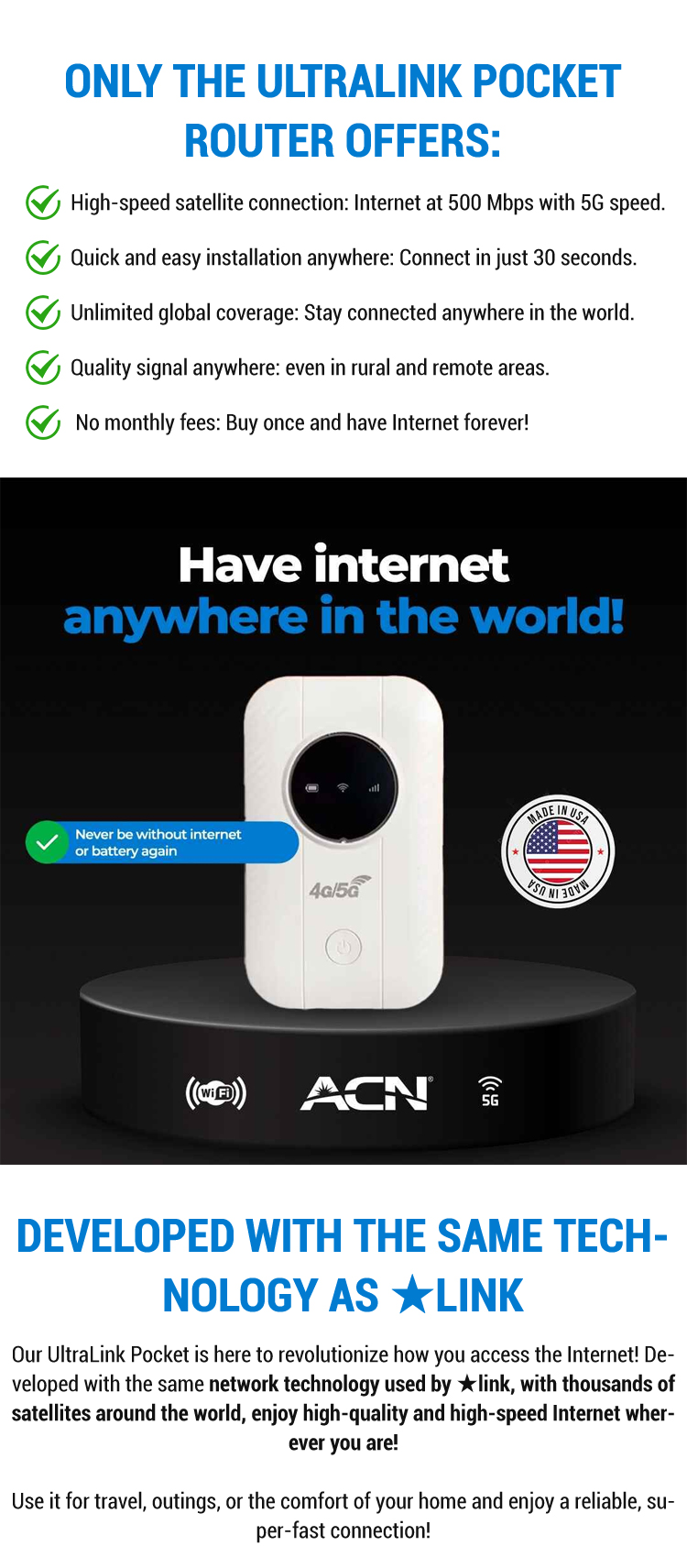 U.S. Military Satellite Wifi, Global 5G Signal Coverage, Lifetime Internet Access 0 Fees
