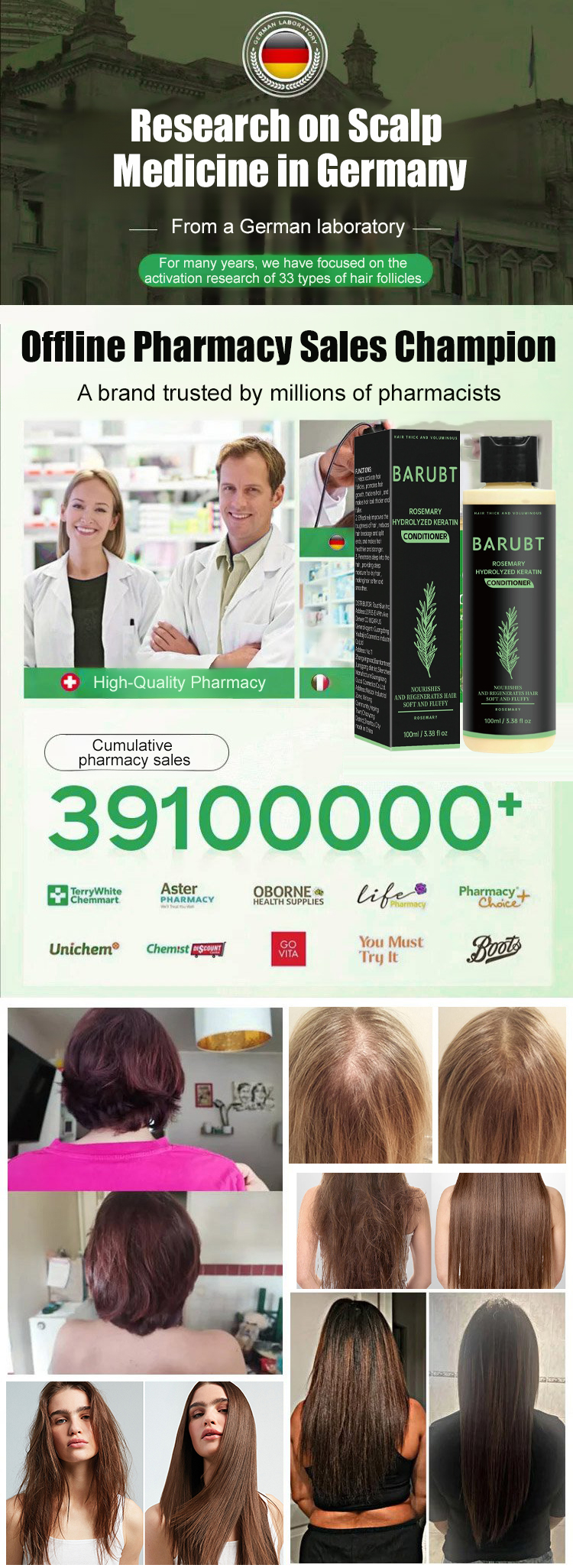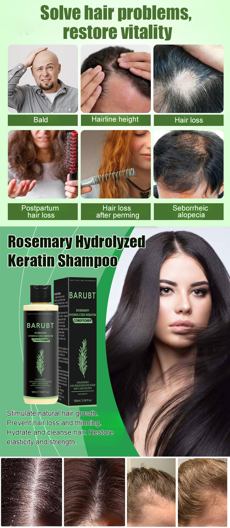 ✨ Organic plant extracts combined with hydrolyzed keratin help repair damaged hair, reduce breakage, and improve thinning hair. ⚡ Rosemary soothes the scalp, moisturizes hair, promotes healthy growth, and leaves hair stronger and fuller.