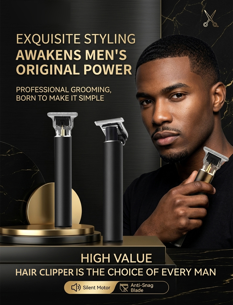 [Silent and non-clamping] Electric hair clipper with engraved pomade head
